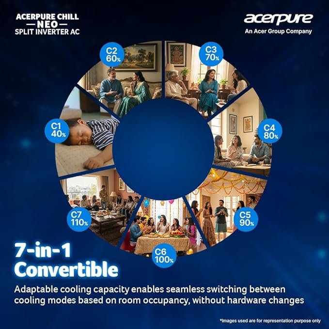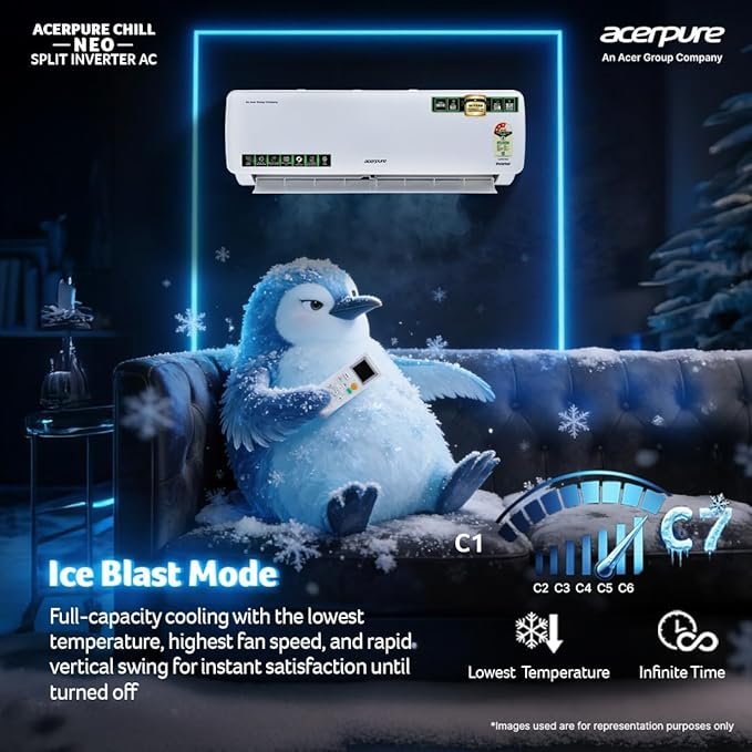 • Acerpure Air Conditioners with 7 in 1 convertible, Ice Blast Mode, 4 way swing and cooling at 58 degrees amibient temperature.