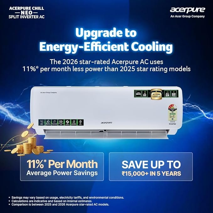 • New 2026 Energy Rating: 3 Star BEE Rating with Eco Mode | ISEER rating of 4.3 W/W | Electricity Consumption : 611.13 Units Per Year