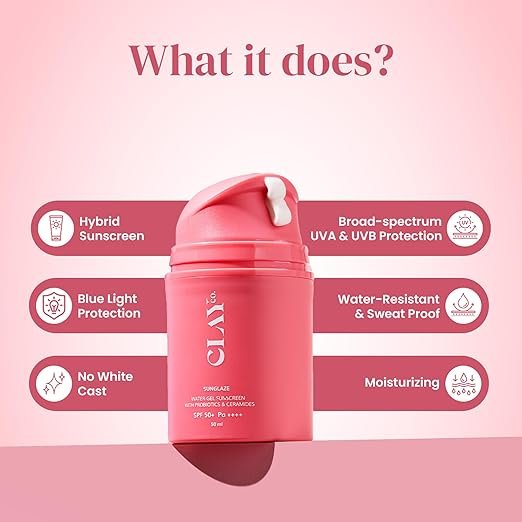 • SPF 50+ & Pa++++ : Combines mineral & chemical filters for broad spectrum protection, shielding the skin from harmful UVA & UVB rays, and blue light. It prevents sun damage, premature aging, and sunburn, making it the best sunscreen SPF for all skin types, including oily, dry, combination, and acne-prone skin
