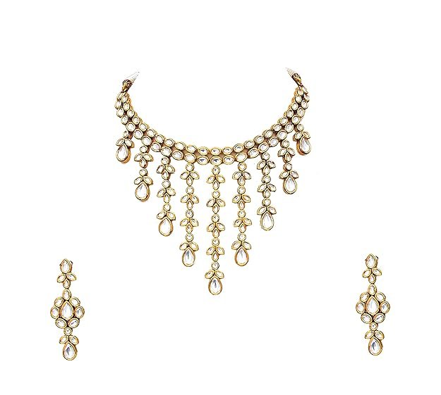 necklace with earrings gold plated studded in kundan stonesNecklace with Earrings Gold Plated Studded in Kundan Stones