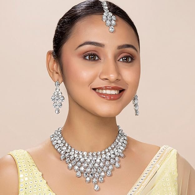 • PACKAGE CONTAINS: 1 Necklace, 1 Pair of Earrings, 1 Maangtikka