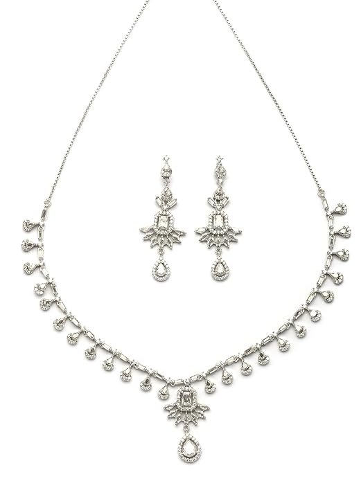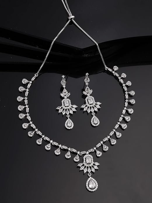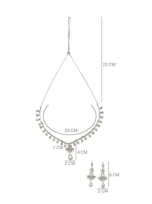 - Rhodium Silver Tone Finish: The rhodium plating gives the jewellery a bright silver-tone look that resists tarnishing and enhances durability.